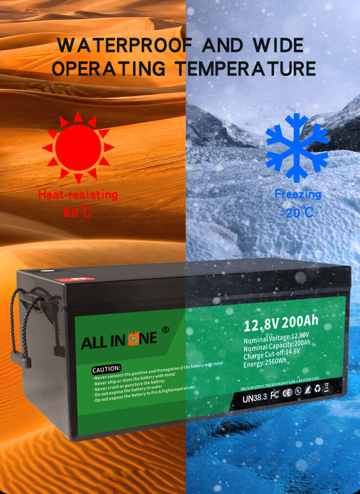 4. Ευρεία θερμοκρασία λειτουργίας: Η μπαταρία LiFePO4 έχει μεγάλο εύρος θερμοκρασίας λειτουργίας -20 ° C ~ 60 ° C.