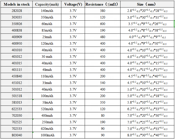 Ονομασία προϊόντος | 581013 μπαταρία λιθίου πολυμερούς 3.7V 50mAh | Παρατήρηση | |