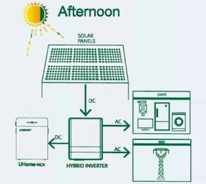 ![]() | Οι μπαταρίες θα τροφοδοτούν το φορτίο AC όταν δύει ο ήλιος. |