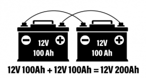 Στο παρακάτω παράδειγμα, έχουμε δύο μπαταρίες 12V, αλλά βλέπετε ότι οι ενισχυτικές ώρες αυξάνονται στα 200 Ah.